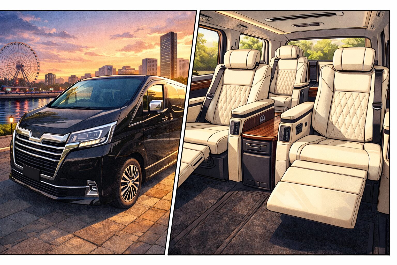 オットマンを出して脚を伸ばし、シートを少し倒すだけで、「移動」から「くつろぎ」に変わります。アルファードも十分快適ですが、空間の余裕と開放感は明らかに上です。