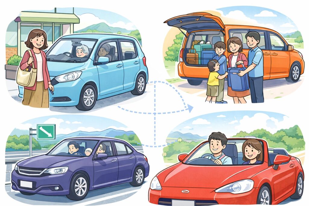 このあと、実際にどんな車が借りやすいのかを、使い方別に整理していきます。