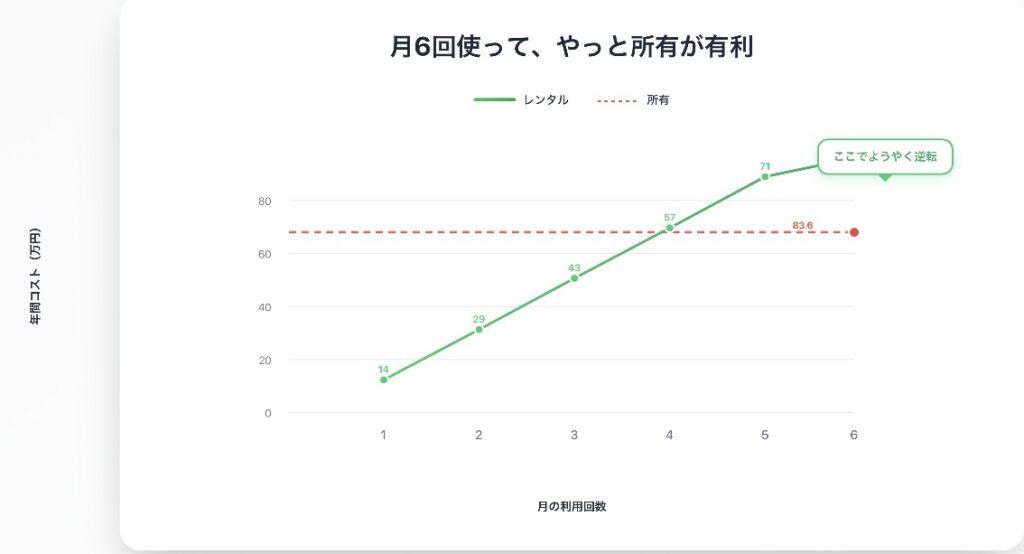 - 月6回(ほぼ毎週)で、ようやく所有と同水準